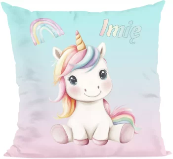 Poduszka Jednorożec romantyczny – pastelowa, z imieniem 40x40cm