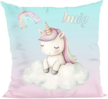 Poduszka Jednorożec na chmurce – personalizowana, pastelowa 40x40cm