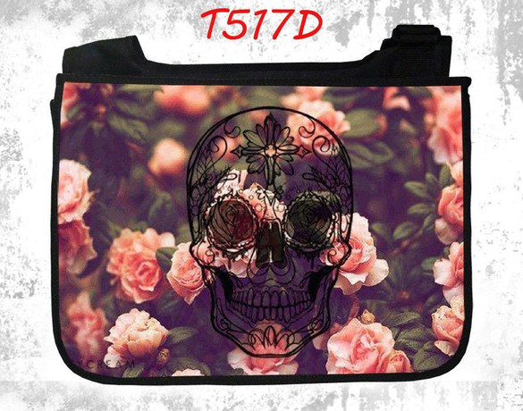 Torba szkolna na ramię – czarna z nadrukiem, pojemna, z regulowanym paskiem