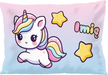 Poduszka Jednorożec Kawaii z gwiazdkami – z imieniem gratis 40x40cm